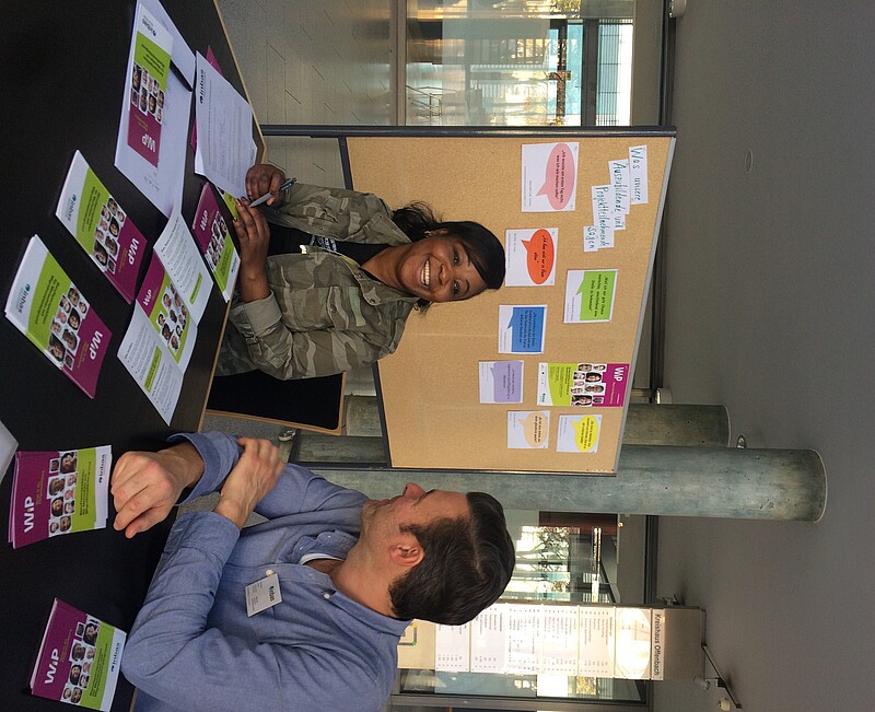 Das Projekt WIP (Wege in die Pflegeausbildung) hat am 20. September 2017 sein Angebot im Rahmen der Interkulturellen Wochen im Kreishaus Dietzenbach vorgestellt und über Möglichketen einer Ausbildung in der Altenpflege, Krankenpflege und Kinderkrankenpflege informiert. Dabei wurden die beiden Projektmitarbeitenden Ralf Priester und Narges Yelaghi durch die Auszubildende der Altenpflege Anisa Sediq unterstützt, die über ihre Erfahrungen in der Ausbildung berichten konnte.